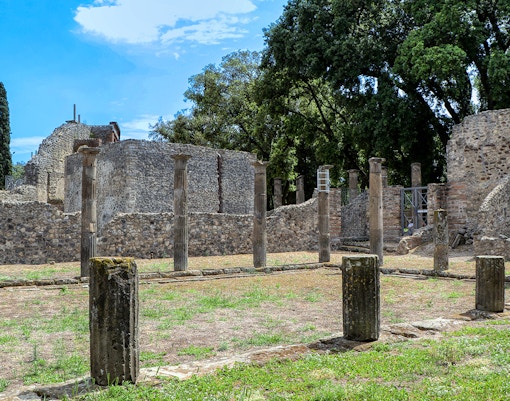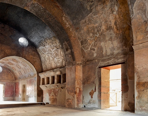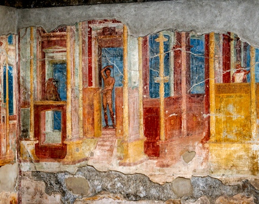 Het Pompeii Gymnasium is een unieke bezienswaardigheid om toe te voegen aan je Pompeii reisroute. Het Gymnasium ligt in Vicolo della Regina en werd pas in 2016 heropend voor het publiek na ingrijpende veiligheidswerkzaamheden. Het centrum werd in het oude Rome gebruikt als fitnesscentrum. Je kunt fresco's zien die atleten, worstelaars, een springer met halters en de wedstrijdjury met een sjerp voor de winnaar in het midden uitbeelden.